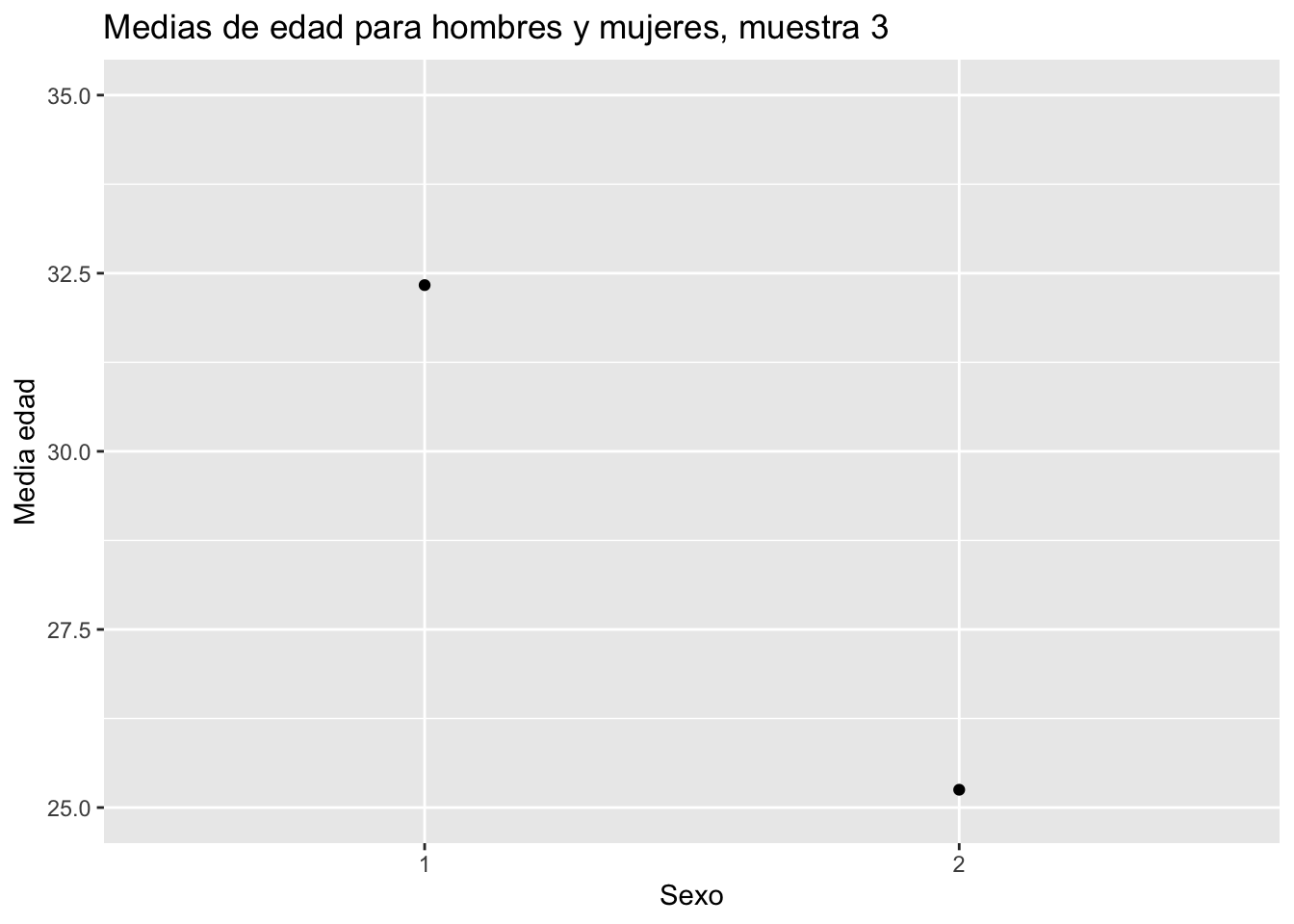 labs(title = "Medias de edad para hombres y mujeres, muestra 3",